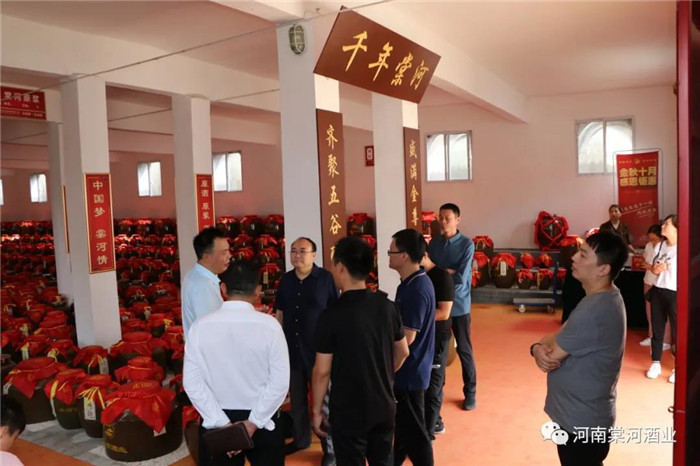 河南棠河酒業(yè)公司董事長常文輝首先向北京儒商會一行表示熱烈的歡迎,并陪同先后到公司黨建室、榮譽室、發(fā)酵釀造車間、藏酒坊、原酒儲存庫等進行了詳細的參觀,并向儒商會一行介紹了棠河厚重的文化和發(fā)展歷程。