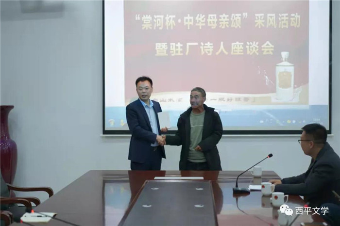 在京西平籍著名詩人、辭賦家、中國詩歌春晚總導演屈金星對"棠河杯•中華母親頌"采風活動暨駐廠詩人李松山聘任工作座談會的召開表示祝賀。他說,棠河酒釀造于嫘祖故里棠溪河畔,具有深厚的歷史文化內涵,此次邀請著名詩人李松山作為駐廠詩人,堪稱創舉,標志著棠河酒以詩歌、文化塑造品牌,體現了歷史文化名酒的風范。